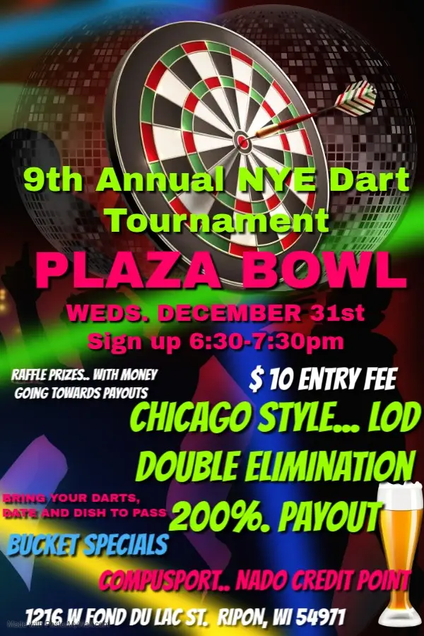 Sign up 6:30-7:30pmChicago Style, Luck of the Draw, Double Elimination.200% PayoutRaffle Prizes with money going towards payoutsBucket Specials
