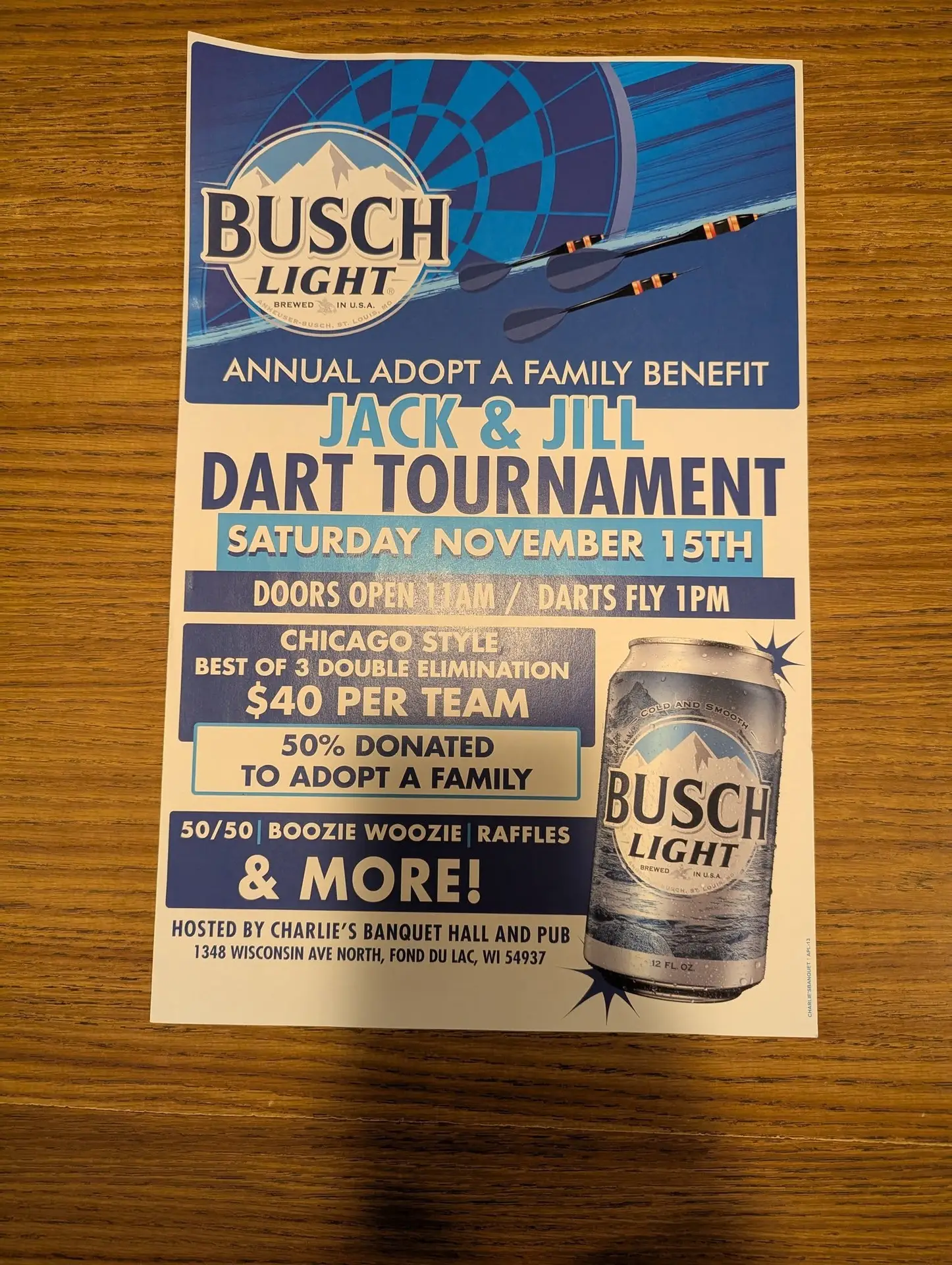 Charlie’s Benefit Dart Tournament for Adopt a Family on Saturday, November 15