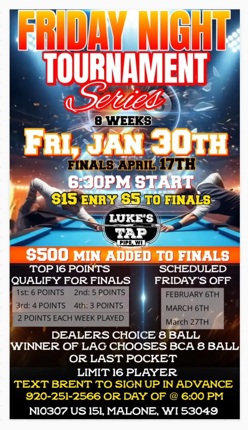 Luke’s Tap Friday Pool Tournament Series 3/6