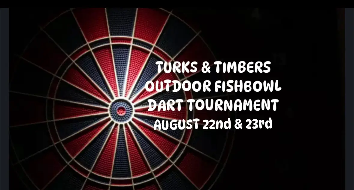 The Outdoor / Fish Bowl Dart Tournament at Turk’s & Timber’s will be Friday, August 22nd, and Saturday, August 23rd.